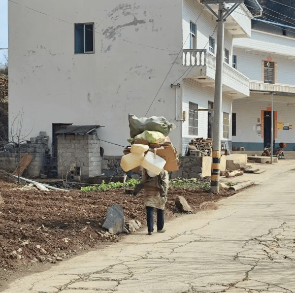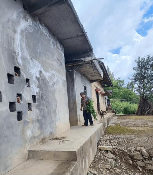 大舅夫妇均为68岁,是目前组里唯一还住在未通公路的人家。大舅长期独居在老家种地,肩挑背扛种些玉米、土豆、红薯等粮食作物,大部分用于喂猪,自家杀一头,卖1-2头,加上多余的粮食,年收入不足1万元。即便是过年,大舅也是大部分时间独居在老家,因为一旦下到县城,他就开始担心养的猫狗猪鸡被饿坏。对大舅来说,这些牲畜不仅是经济来源,也是独居山顶的生活伙伴与情感寄托。大舅时常向子女谴责乃至在朋友圈谩骂大舅妈在城里偷闲——“光玩”,认为照顾孙子、带孙子到处玩非常轻松,而自己独自在老家辛苦受累。